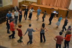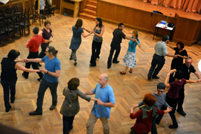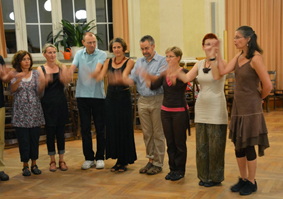KreistänzeKreistänze werden im durchgefassten Kreis getanzt. Von allen Tänzern wird dieselbe Schrittfolge ausgeführt. Man bewegt sich auf der Kreisbahn, in den Kreis heinein und wieder heraus sowie auf diagonalen Linien innerhalb des Kreises. Typisch sind wiederkehrende Richtungswechsel. Wir tanzen Kreistänze aus Israel, Frankreich, Bulgarien, Griechenland, Rumänien, Serbien, Mazedonien, Russland und anderen Ländern. |